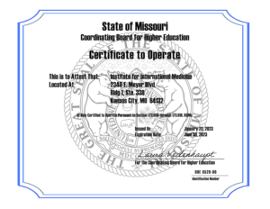The Institute for International Medicine is certified by the State of Missouri Coordinating Board for Higher Education.